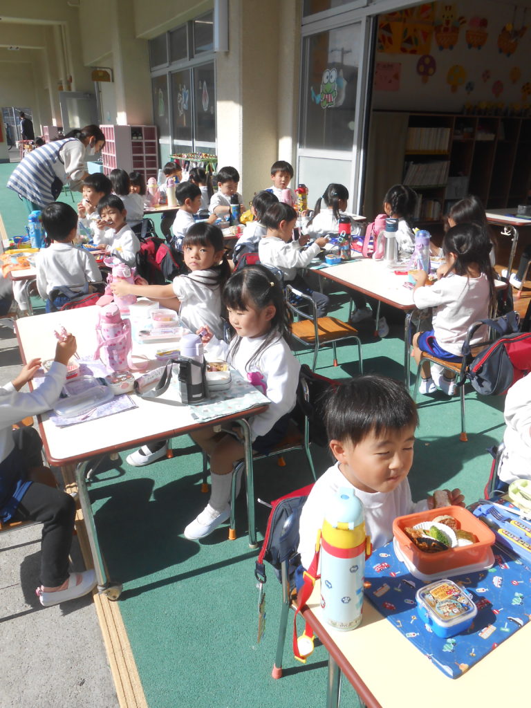 お家の人が作ってくれたお弁当をベランダで美味しくいただきました😊